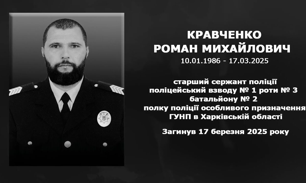 Поліцейський Роман Кравченко, перебуваючи у складі зведеного загону поліції, виконував бойові завдання на Харківському напрямку. 17 березня минулого року під час ворожого обстрілу із застосуванням реактивних систем залпового вогню та скидів із безпілотника боєць отримав смертельні поранення.
