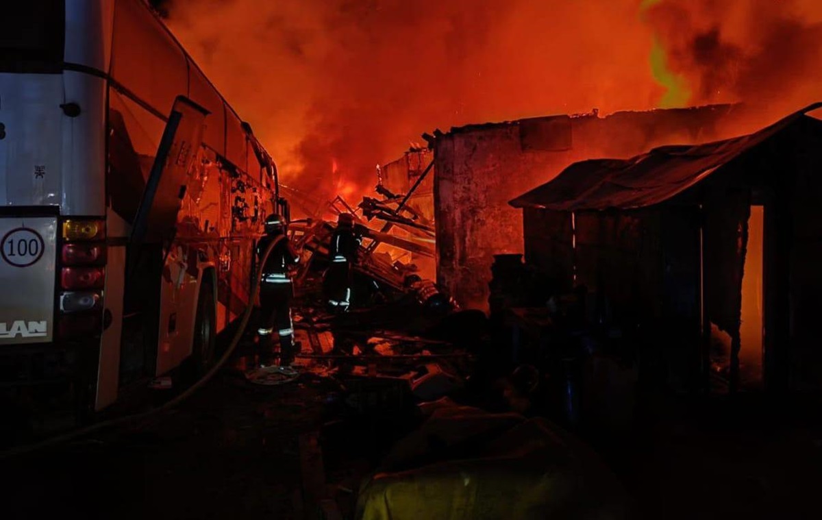 Внаслідок влучань зруйновано будівлю СТО з подальшою пожежею; знищено два пасажирські автобуси та сім легкових автомобілів.