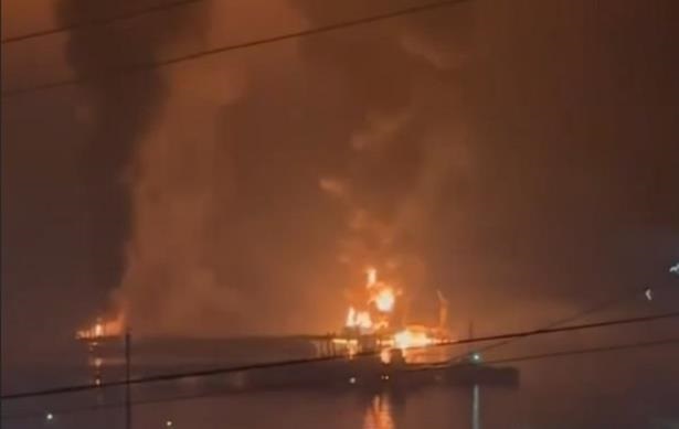 “Внаслідок ударів українськими БпЛА було пошкоджено: трубопровід виносного причального пристрою та зливо-наливний причал, а також сталося загоряння чотирьох резервуарів із нафтопродуктами”, – йдеться у повідомленні.