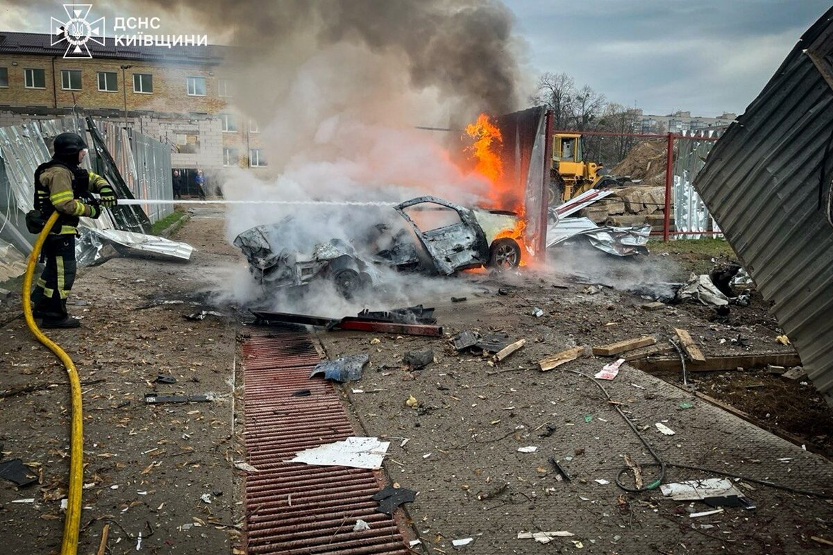У Вишневому Бучанському районі загинула одна людина. Рятувальники ліквідували загоряння автомобіля. Окрім цього, у місті “шахед” впав між дитячим садом і школою. У сусідніх житлових будинках розбиті вікна та пошкоджені балкони.